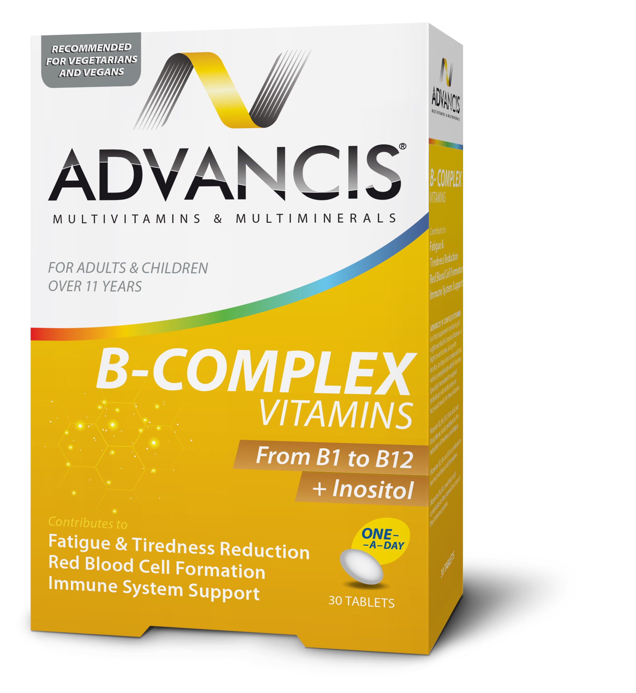 Advancis® B-Complex Vitamins contains all eight essential B-Complex Vitamins along with inositol, an important compound that works synergistically with B-Vitamins.