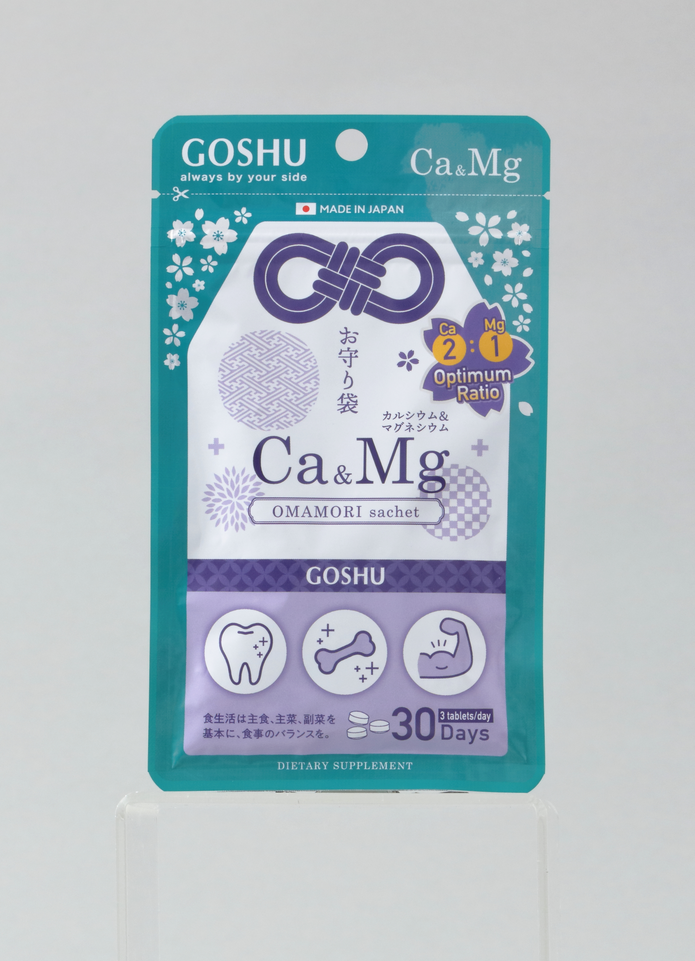 Calcium and Magnesium work together to maintenance of normal bones, teeth and normal muscle function.Magnesium is needed for calcium absorption.Calcium helps maintain bone density to fight for the age-related bone loss.Omamori is a Japanese lucky item for protection. Omamori are rooted in animistic Shinto belief that spirits or deities inhabited in all objects. This practice was adopted by shrines and temples, offering protection with consecrated slips of paper or wood printed with religious symbols like the name of deities and shrines. Omamori are thought to ward off calamity and keep its owner safe.