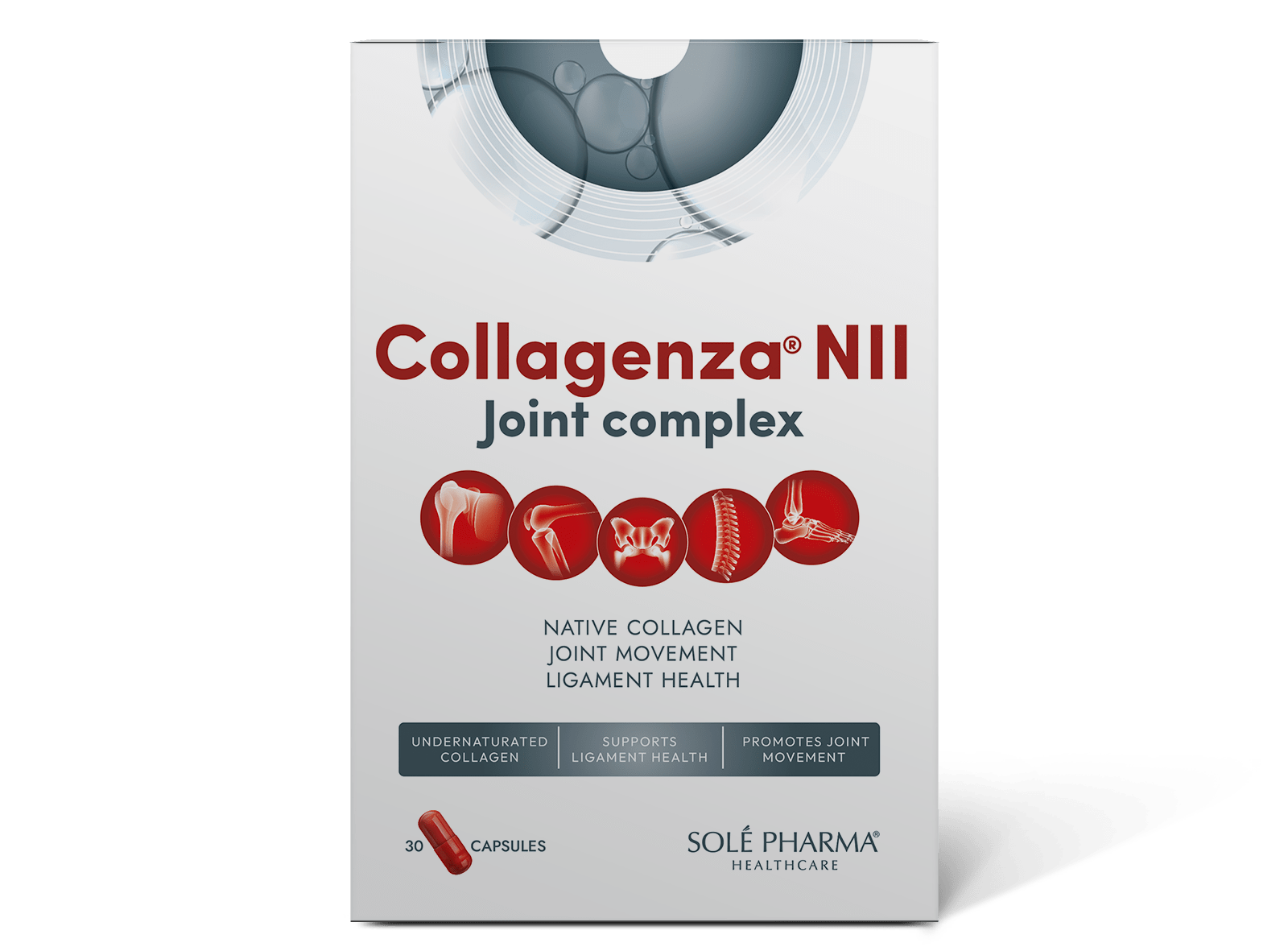 Collagenza® NII Joint complex is highly efficacious low dose native (undenatured) type II collagen complex. Collagenza® NII Joint complex for joint allows patients to improves joint mobility, flexibility and endurance by only one capsule a day. Native (undenatured) type II collagen reduces the body’s natural immune cell attack on the core structural protein that is collagen present in cartilage.