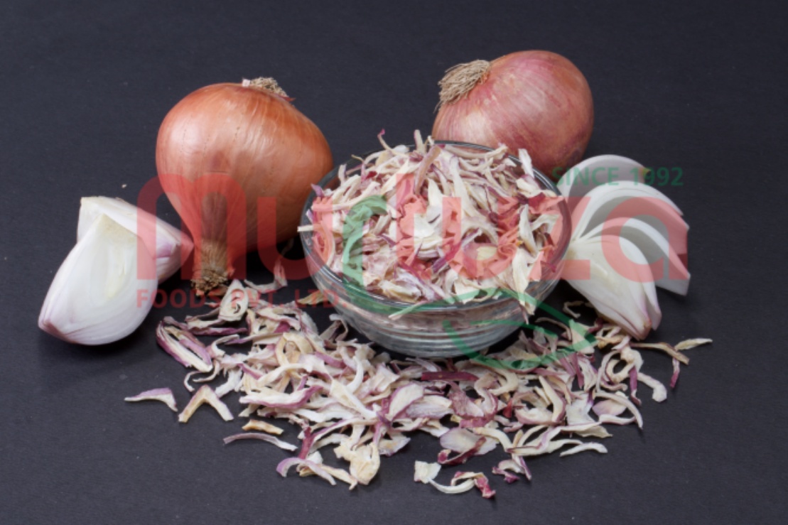 Our Dehydrated Pink Onion Products are produced from Indian Onions that are Sound, Mature, Freshly Harvested, Selected and Hand-Picked, Free from Damage, Soil and Cuts. It is prepared and processed in State-Of-The-Art Dehydration Facility and packaged Under Modern Sanitary Conditions in accordance with CGMP and CGHP. Selected Fresh Onions are Washed, Sliced, Air-Dried and processed further to obtain various forms as Kibbled / Flakes, Chopped, Minced, Granules, Powder, & Specials Cuts as per Customised Requirement. Our Onion Products are Free from Allergen, Free from Gluten, Non-GMO and are Suitable for Halal and Kosher requirements.