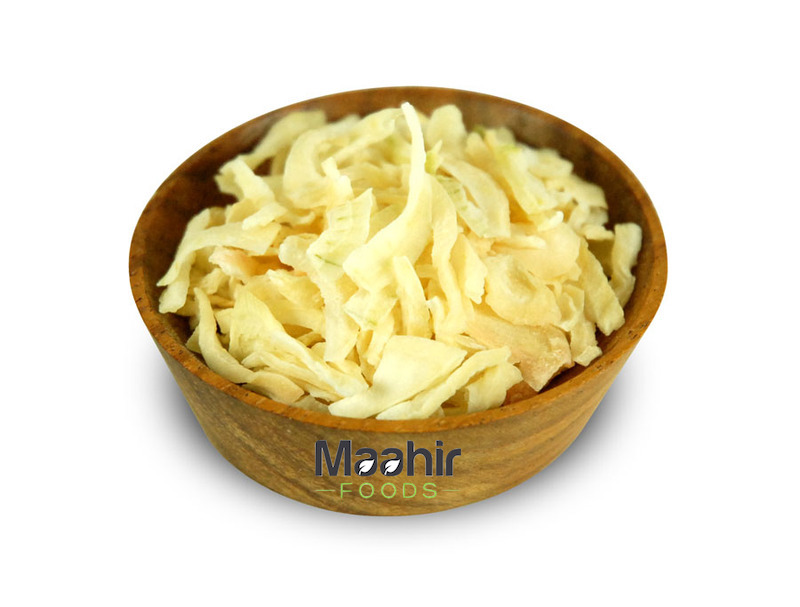 Produced from sound, mature, selected, hand-harvested, clean White Onion Kibbled free from damage, soil & cuts, selected fresh White Onion Kibbled are peeled, washed, inspected, air dried & sieved to produce standard Slices / Kibbled / Flakes – White Onion Slices / Kibbled / Flakes