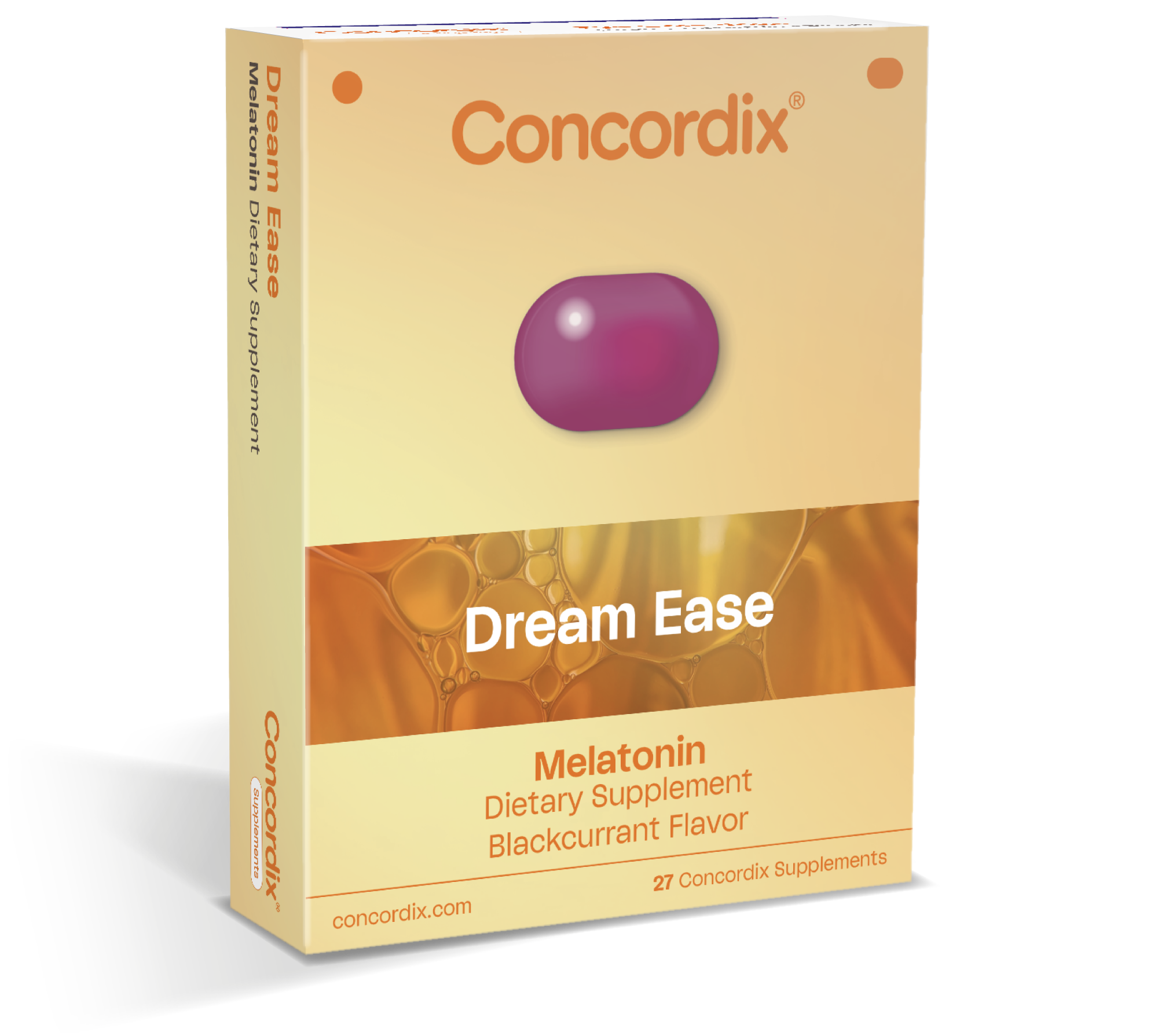 Concordix® Dream Ease features a soothing blend of melatonin and chamomile in a delicious blackcurrant chewable. We’ve crafted this supplement to support healthy sleep cycles and nightly relaxation, making rest a calm and enjoyable part of your routine.