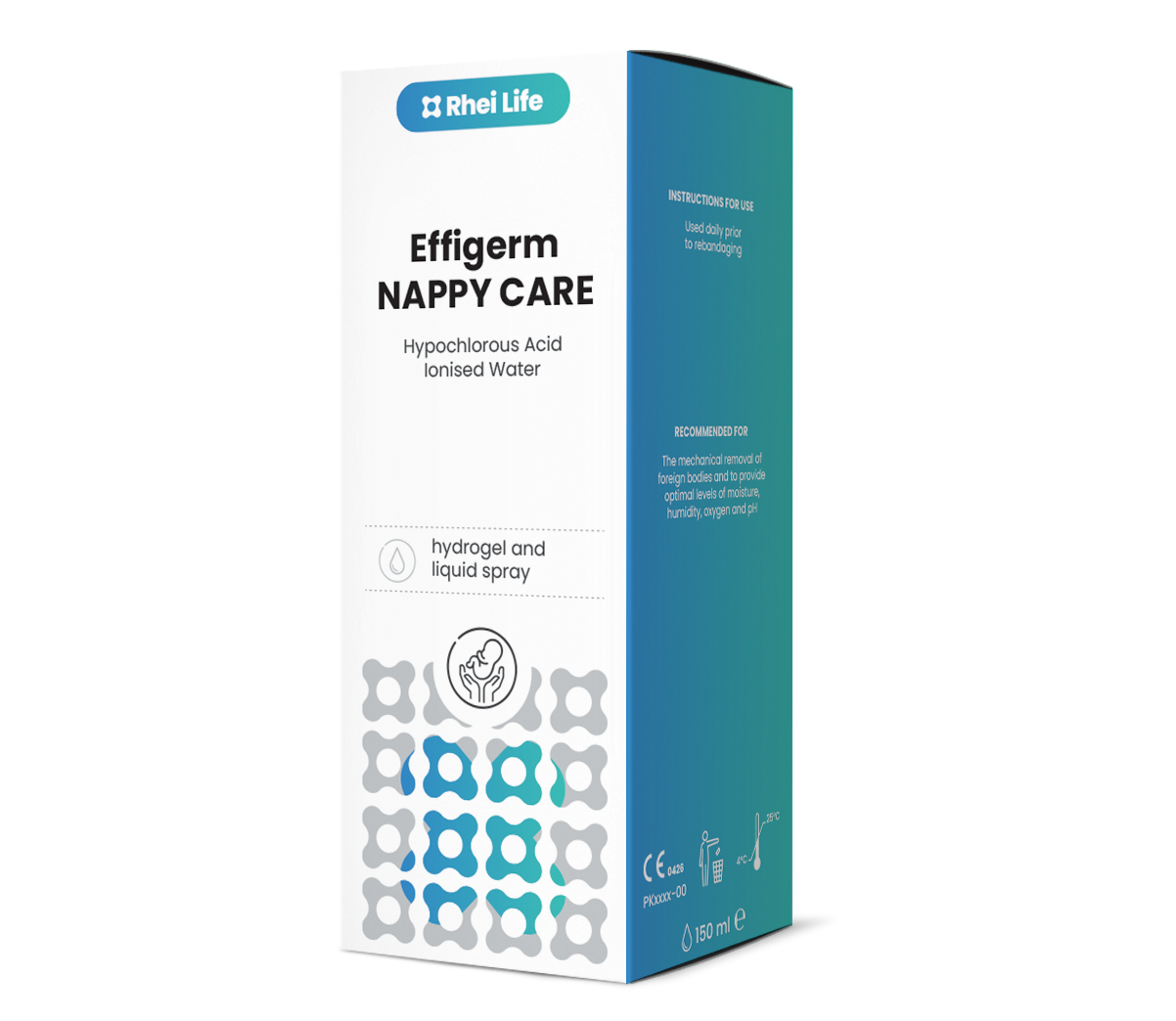Effigerm NAPPY CARE is a convenient spray liquid and hydrogel formulation that utilizes a patented technology that harnesses the power of hypochlorous acid, a naturally occurring substance in the body, to mimic the immune system’s response. Effigerm NAPPY CARE is clean and as natural as water.