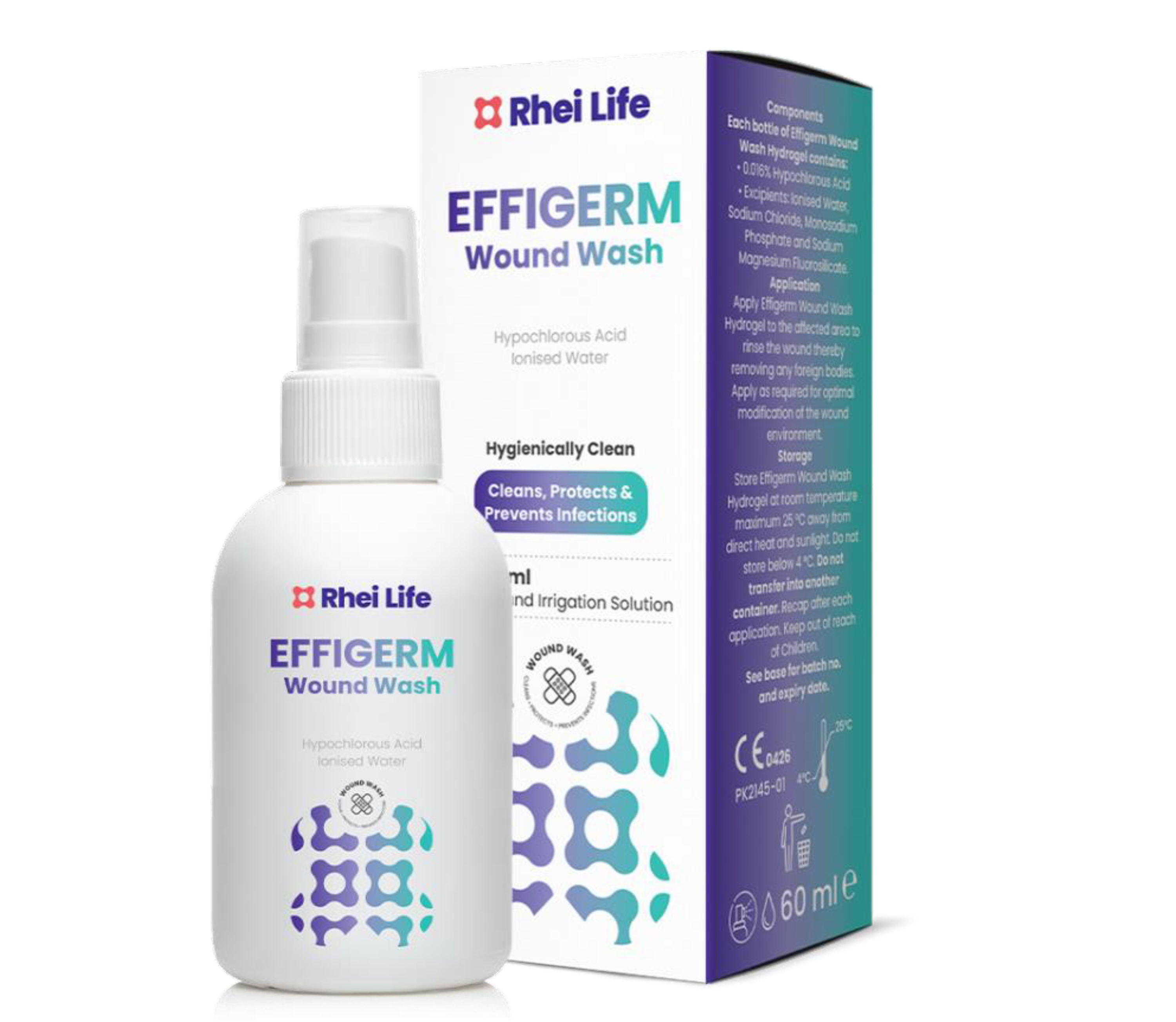 Effigerm is a convenient spray liquid and hydrogel formulation that utilizes a patented technology that harnesses the power of hypochlorous acid, a naturally occurring substance in the body, to mimic the immune system’s response. It serves multiple purposes in wound care, including cleansing, debriding, and preventing infections.