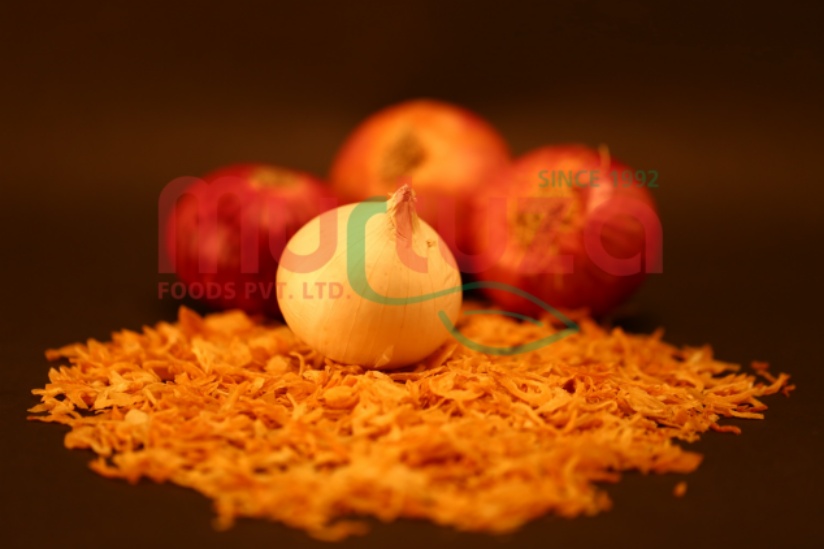 Our Dehydrated Fried Onion Products are produced from Indian Onions that are Sound, Mature, Freshly Harvested, Selected and Hand-Picked, Free from Damage, Soil and Cuts. It is prepared and processed in State-Of-The-Art Dehydration Facility and packaged Under Modern Sanitary Conditions in accordance with CGMP and CGHP. Selected Fresh Onions are Washed, Sliced, Air-Dried*, Fried and processed further to obtain various forms as Kibbled / Flakes, Chopped, Minced, Granules, Powder, & Specials Cuts as per Customised Requirement.