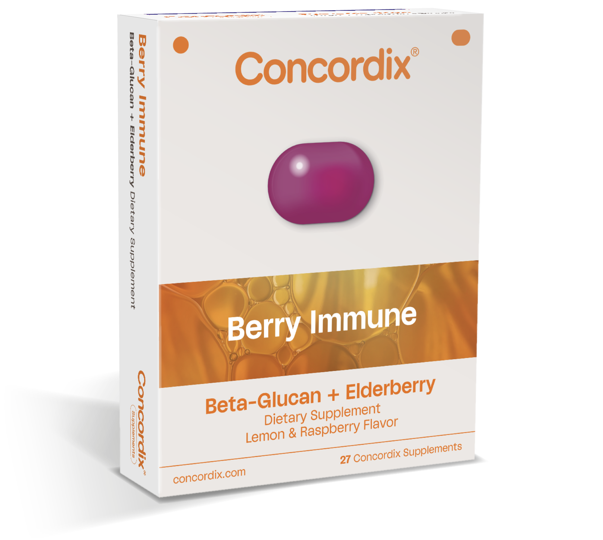 Berry Immune Concordix® supplements deliver four key nutrients in a delicious, sugar-free lemon-raspberry chewable, designed for daily wellness. Crafted for convenience with today’s busy lifestyles in mind, this supplement helps maintain normal immune function.
