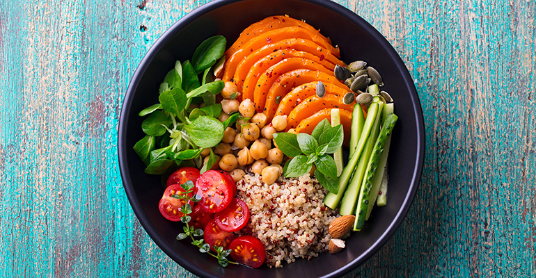 According to the non-profit Yoga Institute, a yogic way of life aims to increase an individual’s ‘sattva’ quality by nurturing consciousness through a healthy body and mind. A sattvic diet is vegetarian, featuring fresh fruit, vegetables, whole grains, pulses and some dairy, and it raises the sattva.