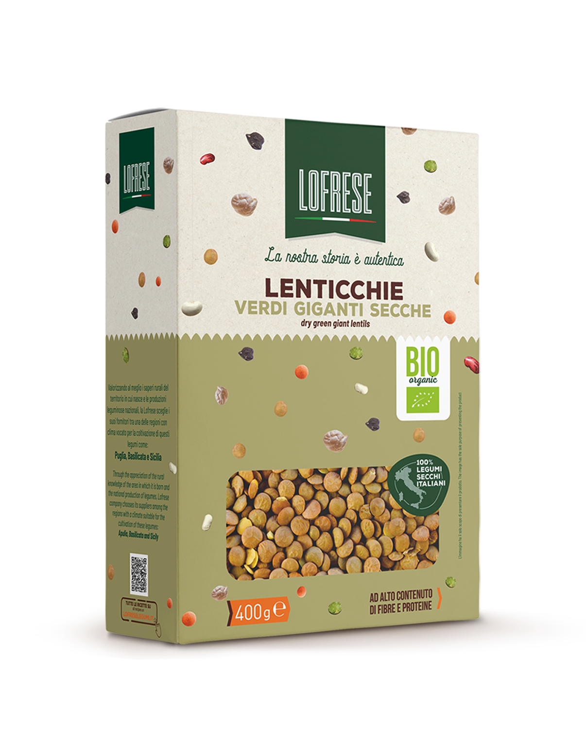 100% Italian organic legumes that contain all the goodness of our land through a heterogeneous range of products, carefully selected from the best local legumes to protect biodiversity. Lofrese's commitment to environmental sustainability is also reflected in the choice of FSC eco-sustainable packaging, a certificate that guarantees production that respects the environment, the rights of workers and local populations.
