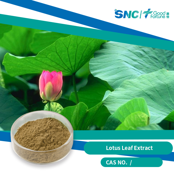 The Lotus Leaf Extract is NelumbonuciferaGaertn. It mainly contains alkaloids, flavonoids, volatile oil and other components. Flavonoids, is the removal agent of most oxygen free radical, which has significant effect on the treatment of coronary heart disease, hypertension and other diseases, and has the effect of antibacterial and anti-inflammatory. It can not only be used as an API for cardiovascular diseases, but also widely used in functional food, health food, beverage, food preservative and preservative and cosmetics.