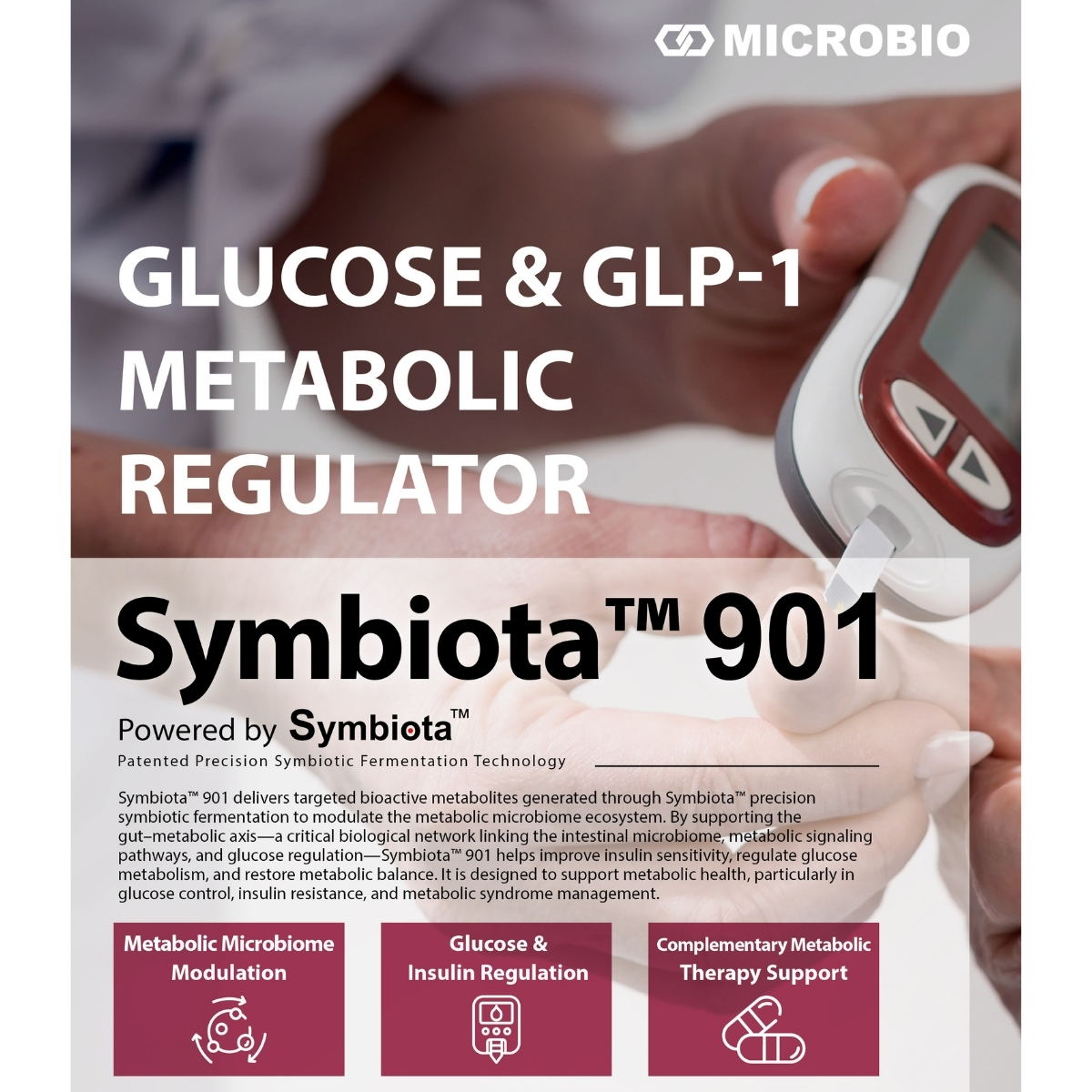 Symbiota™ 901 delivers targeted bioactive metabolites generated through Symbiota™ precision symbiotic fermentation to modulate the metabolic microbiome ecosystem. By supporting the gut–metabolic axis—a critical biological network linking the intestinal microbiome, metabolic signaling pathways, and glucose regulation—Symbiota™ 901 helps improve insulin sensitivity, regulate glucose metabolism, and restore metabolic balance. It is designed to support metabolic health, particularly in glucose control, insulin resistance, and metabolic syndrome management.