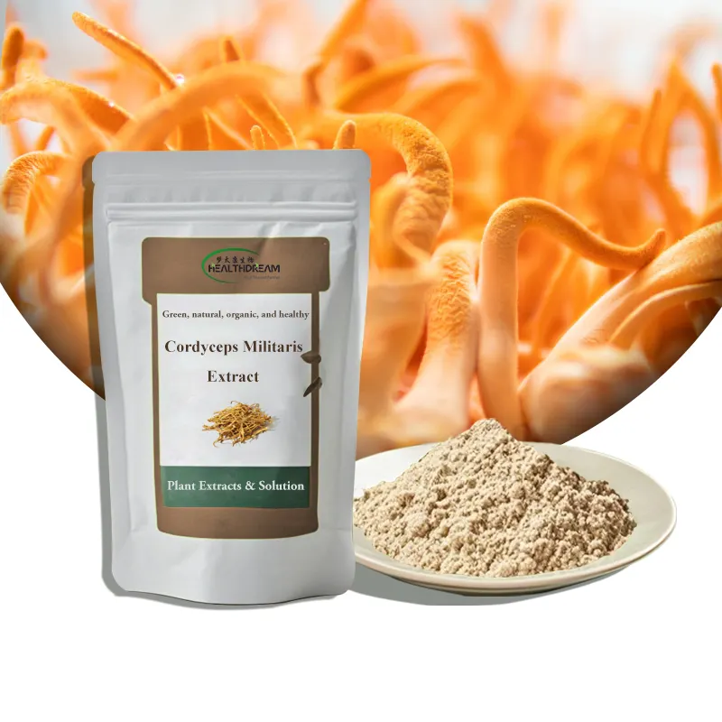 Wuhan Healthdream organic cordyceps militaris extract mainly comes from Cordyceps militaris.Its growth environment is relatively diverse. In natural environments, it is mainly distributed in forest areas of some mountainous areas in the north, such as parts of Northeast and North China. Meanwhile, due to its ability to be artificially cultivated, it can also grow well in many artificial environments.