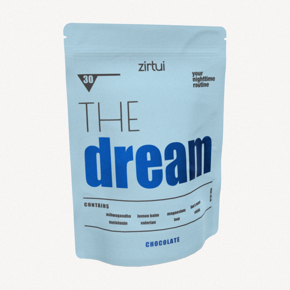A good night's sleep can add years to your life! During our sleep, our body undergoes important processes of cellular repair and maintenance, and our immune system gets a boost.  A lack of sleep on the other hand is a major driver of premature aging: it is linked to an increase in cardiovascular and cognitive diseases, it messes up our hormonal system and it impairs our metabolic health. Not to mention the impact a sleepless night can have on our mental health! Sleep is a critical component of a healthy lifestyle for longevity and an essential habit that must be prioritized. THE dream is not a sleeping pill. Instead, we created a nighttime ritual before going to bed that helps you to relax and unwind.  THE dream is a patented herbal blend comprising melatonin, ashwagandha, magnesium, hops, lemon balm valerian, reishi and Lion's mane with cocoa that helps you fall AND stay asleep. Sweet dreams are made of THE dream!
